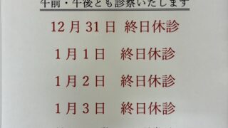 📢年末年始の休診について📢