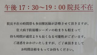 多田獣医師はおりますので、診察は行なっておりますが院長不在のため、待ち時間が通常よりも長くなる可能性がございます。