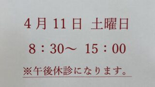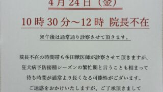 4/24(金)は院長が葬儀へ参列のため10時半〜12時の間不在となります。